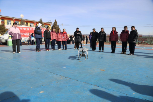操场上,机械狗的精彩表演引发了学生们的好奇心。在科技辅导员的操作下,机械狗展示了多种动作,包括“伸懒腰”“握手”“打招呼”“跳跃”“旋转”等,令现场气氛达到高潮。学生们亲手操作、观察现象、探究原理,在“试一试”“想一想”中“零距离”感受科学的奥妙和乐趣。