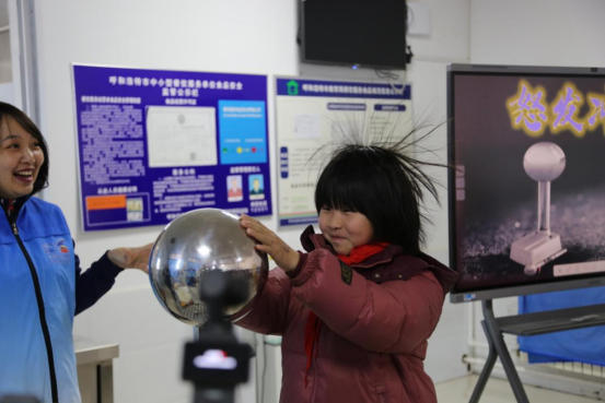 除了内容丰富的科学实验课,科技辅导员们还精心编排了趣味十足的科学实验秀《静电炫彩秀》和《魔法大挑战》。《静电炫彩秀》精彩展示了七大循序渐进、从易到难的静电实验,学生们亲眼目睹了“静电跳跳豆”的活泼跳跃、“飞舞”的蛋挞皮奇观、令人捧腹的怒发冲冠现象,直观感受摩擦生光的奇迹。互动环节,科技辅导员们还准备了“静电杯”实验,同学们争先恐后地参与其中,触摸静电杯,感受静电的神奇力量。现场笑声、惊叹声此起彼伏。