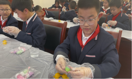 在自制弹力球环节,课堂气氛达到高潮。科技辅导员详细介绍了弹力球制作原理和步骤后,同学们迫不及待地行动起来。“快看,我的弹力球成型了!”“我的弹力球弹性真好!”随着一颗颗色彩斑斓、弹性十足的弹力球在同学们手中诞生,教室里响起阵阵欢呼声。