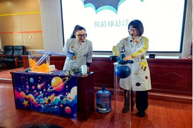 活动中,内蒙古科技馆科技辅导员表演了原创科学实验秀《隐形大力士》,为学生们带来了一场既富有创意又蕴含深厚教育意义的科学表演。实验秀引领学生们踏入了一个奇妙无比的“大气压强”世界,通过一系列精心设计的环节,将科学探索的奥秘与乐趣展现得淋漓尽致。实验秀以生活中常见的科学现象为起点,巧妙地串联起经典物理问题,同时融合了趣味科学实验、艺术表演等多种表现形式,极大地激发了学生们对科学探索的热情与好奇心。在实验秀的精彩演绎中,学生们亲眼目睹了“压扁的水桶”利用大气压力原理的巧妙设计,体验了“隔空喝牛奶”的视觉奇观,惊叹于“乒乓球机关枪”的连续射击以及“保龄球悬浮术”的不可思议。