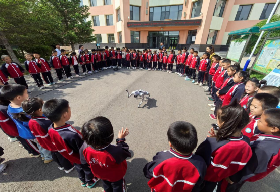 随后,科技辅导员还为学生们带来一场别开生面的“四足机器人”互动体验课。这个特殊的宠物本事很大,它一系列复杂的动作与互动式表演,引发了阵阵欢呼喝彩,学生们激动的心情溢于言表。机器人表演结合科技与娱乐,不仅为学生们提供了视觉享受,也展示了现代前沿科技的无限魅力。