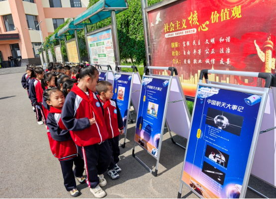 活动现场,科普大篷车满载着多种科普展品及航天主题展板在教学楼前整齐排开,吸引学生和老师前来观看、互动。科普展品“用药安全”“鱼洗”等涵盖健康、物理、安全等多领域内容。学生们认真聆听科学讲解,仔细观察科学现象,深入思考科学原理,在动手实践中体会科技的神奇与魅力。