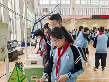 活动现场,科普大篷车展示的“农村消防安全”“健康生活”“传动结构”“智慧农业”“眼睛与健康”“用药安全”等经典展品,吸引了众多学生的目光。在“农村消防安全”展示区,学生们纷纷将不同灭火器的实际效果与对应火情进行联系,在互动过程中学习消防安全知识。在“智慧农业”互动区,学生们通过转动转盘、调节开关的方式,体验现代化农业领域的新变化。