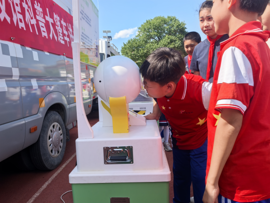 此次活动不仅为同学们带来了科普展品,还带来了“机甲大师”和“四足机器人”表演。表演现场,激动和兴奋的童音不时响起。同学们惊叹于神奇的科学现象,亲历各种有趣的实验活动,感受科学技术带来的丰富知识与快乐。