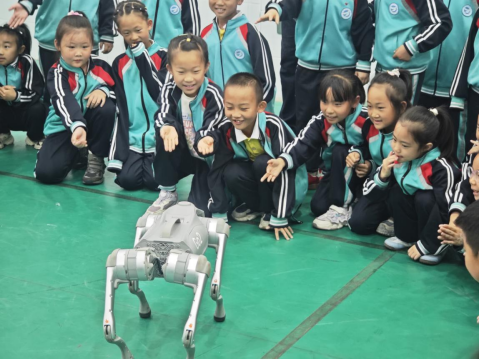当机甲大师在操场灵活穿梭、四足机器狗“绝影”稳健攀越障碍时,操场上连连发出惊叹与欢呼。这些凝聚着人工智能与尖端工程智慧的“未来使者”,不仅展示了中国科技的硬核实力,更以极具观赏性的表演瞬间点燃了学生们对机器人技术的无限憧憬。
