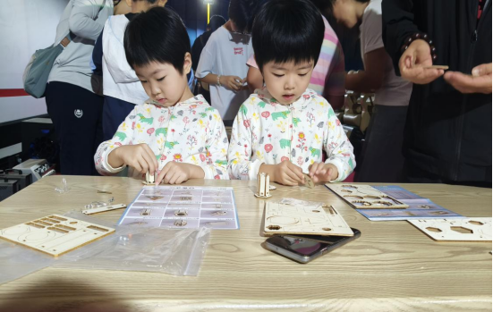知识分享结束后,最受期待的“动手环节”正式开启。辅导员们早已备好天文望远镜模型材料包,从镜片安装到支架固定,辅导员们耐心指导每一位观众。“先把镜筒对准卡槽,再调整焦距旋钮……”孩子们互相协作,家长们也重拾动手的乐趣。原本零散的零件,在大家的巧手下逐渐变成迷你望远镜。当第一台模型完成,一位小朋友迫不及待地举起它,兴奋地喊道:“我要用它看远处的风景!以后我还要用真正的望远镜看月亮!”