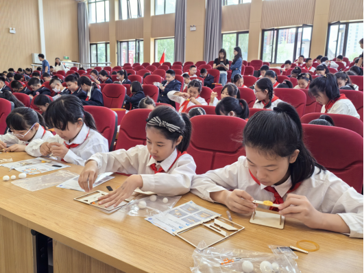 课程不仅注重知识传授,更强调动手实践。动手环节,科技辅导员带领学生们制作了“太阳-地球-月球”三体运动模型。“当地球公转和自转同时进行,月球还在绕地球公转时,整个系统变得复杂而美妙。”科技辅导员指导着学生们操作。通过动手实践活动,学生们直观理解了为什么我们看到的月亮形状会变化,为什么会有季节更替,以及日食、月食形成的条件。