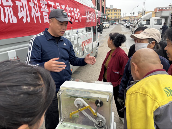 在广场中央,“插秧机传动机构”“双曲狭缝”等科普展品整齐有序摆放,科技辅导员热情为群众展示和讲解相关科学原理。这场“科技派对”,让科学知识看得见、摸得着,在群众心里种下探索科学的种子。