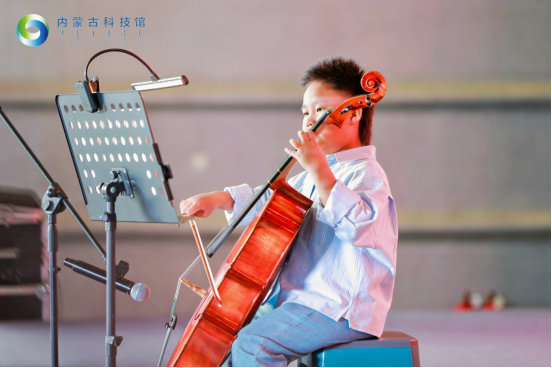 内蒙古科技馆小小科普讲解员孙布尔为现场的观众们带来了大提琴独奏《我爱你中国》。这位年轻的演奏者以琴弦为心声,用音乐作誓言,在弓弦交错之间,生动展现了新时代少年的爱国情怀与昂扬向上的精神风貌。
