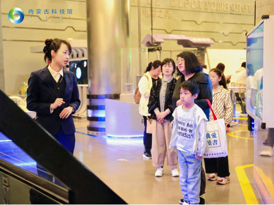 为了让大家逛得透、学得深,内蒙古科技馆讲解服务全程在线。常设展厅“定时讲解”准点开播——在“天宫一号目标飞行器”展项前听航天故事,在“生命与健康”展区探秘人体奥秘,科技辅导员把复杂原理聊成“家常话”,观众听得入迷;互动展项前,大家有序排队体验,从“地震模拟”到“光影魔术”,亲手操作的快乐让科技不再遥远;专题展厅“共和国脊梁”科学家博物馆馆藏精品展,通过实物、影像、图片等多维度展示,诉说着科研先辈的坚守,展示了榜样的力量。
