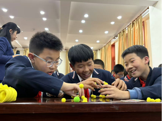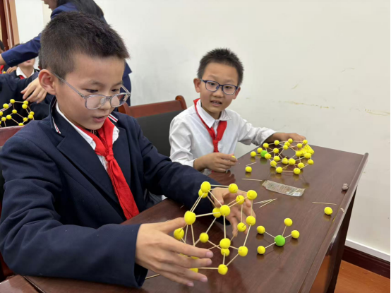 “我的‘甲烷宝宝’被关进‘水笼子’里了!”一位同学兴奋地向同伴展示自己的作品。通过动手实践,抽象复杂的化学概念化为了触手可及的立体模型,可燃冰分子结构的奥秘在同学们手中被一一解开。