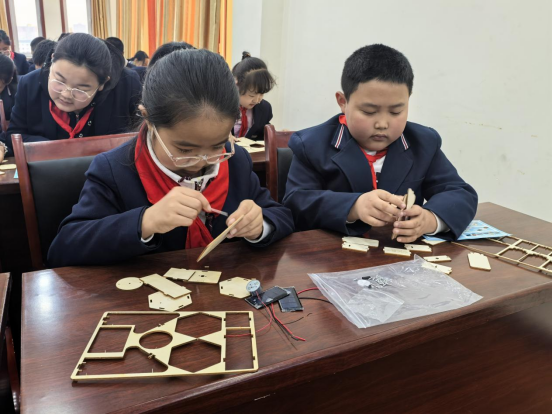 动手实践环节中,学生们迫不及待地制作人造卫星模型。他们小心翼翼地拼接部件,安装“太阳翼”,一边动手,一边讨论着卫星各部分的功能。一个个精巧的卫星模型在学生们手中逐渐成型,这不仅锻炼了他们的动手能力和团队协作精神,更让他们对卫星的构造有了更直观、更深刻的理解。