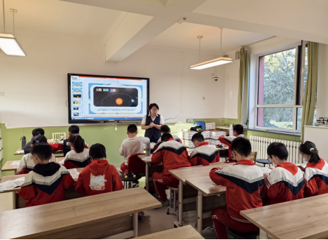 课堂上,科技辅导员通过一系列精心设计的实验和互动环节,带领学生们深入探索了太阳、地球和月球之间的关系;通过生动有趣的讲解,引导学生们从宇宙空间的天体视角认识这三大天体,让学生们理解为什么会有白天和黑夜,以及极昼和极夜等现象的科学原理。