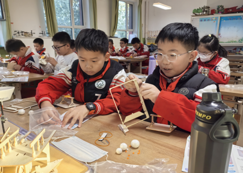 课程不仅注重知识传授,更强调动手实践。动手制作环节,科技辅导员带领学生们制作了“太阳-地球-月球”三体运动模型。通过动手实践活动,学生们进一步理解了太阳、地球和月球之间的关系以及它们各自的特点和运行规律。