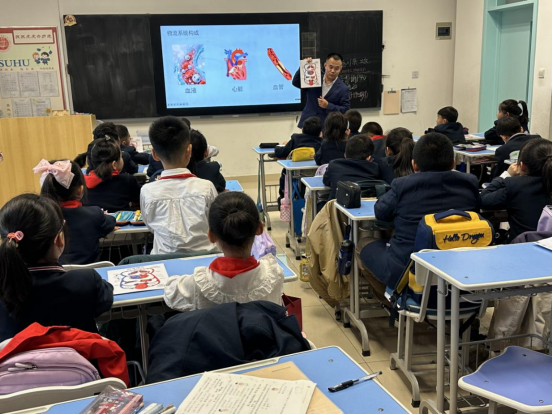 课堂上,科技辅导员以“为什么运动的时候会出现喘气、心脏加速跳动这些现象?”为切入点,将人体血液循环示意图与“人体物流”系统构成相结合,讲解了心脏的结构特点和血液流动的方向及途径;将课本上“体循环”“肺循环”的知识点融入实际操作,结合模型运转情况,帮助同学们了解心脏四腔的作用、动脉、静脉与毛细血管的区别,原本晦涩的概念在动手实践中逐渐清晰。