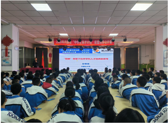 在北京一零一中呼和浩特分校,内蒙古大学研究生院院长、化学化工学院教授、博士生导师谷晓俊围绕能源化学中的结构之美,结合课题组目前研究进展,为300余名同学作“‘双碳’背景下化学学科人才培养的思考”专题讲座,引导同学们从多孔MOF出发去构筑目标催化剂,从配位化学的角度去研究催化问题。讲座现场气氛热烈,同学们深入思考,广泛交流。通过这次活动,两所学校学生对“英才计划”中生物学科和化学学科有了更进一步的认识和了解,为参与后续培养打下了坚实基础。(周亚军)