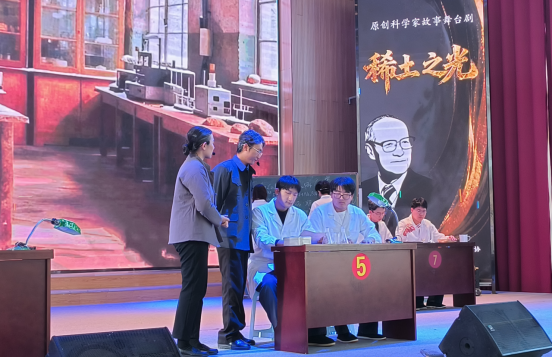 内蒙古师范大学的演员们用实验服上的斑驳污渍还原出包头矿区的艰苦环境,“串级萃取理论”从质疑声中被一次次验证,台下学生们的眼神从疑惑逐渐转为惊叹。“中国的稀土资源绝不能受制于人!”舞台上,徐光宪院士掷地有声的誓言,让台下师生深切感受到老一辈科学家的家国情怀。剧中徐光宪团队在简陋实验室中日夜攻关的场景,让商都县第五中学学生王姝涵感慨:“原来我们手机里的稀土元素,背后是科学家们用青春和坚守换来的突破。”