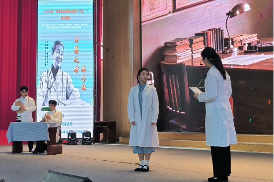 察右后旗第一中学报告厅内座无虚席,掌声雷动。集宁师范学院带来的《万婴之母—林巧稚》,用细腻的舞台语言勾勒出林巧稚跨越半个世纪的医者人生。1921年高考场外,演员跪地救助孕妇的场景让不少女生红了眼眶;1949年开国大典前夕,林巧稚在产房守护新生儿的剪影,与窗外欢庆的人群形成强烈对比。剧中“新生儿啼哭”的真实音效,让师生们真切感受到“生命守护者”的责任与温度。“她一生未婚,却赋予了无数女性成为母亲的权利。”察右后旗第一中学教师姚刚动情地说。