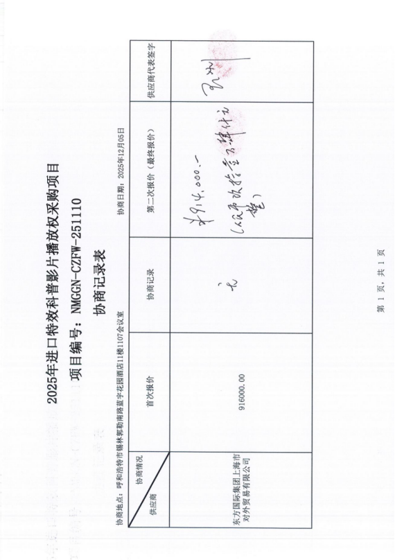 2025年进口特效科普影片播放权采购项目 中标(成交)结果公告