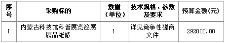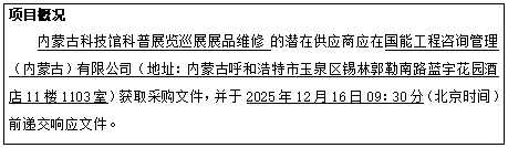 内蒙古科技馆科普展览巡展展品维修竞争性磋商公告