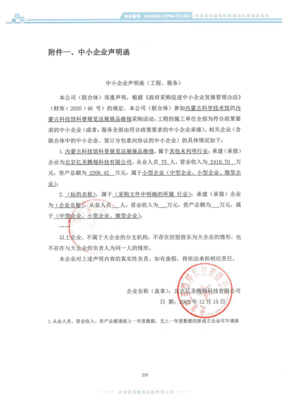 发布时间:2025-12-16 14:47 文章来源:内蒙古科技馆合作交流部一、项目编号:NMGGN-CZFW-251203