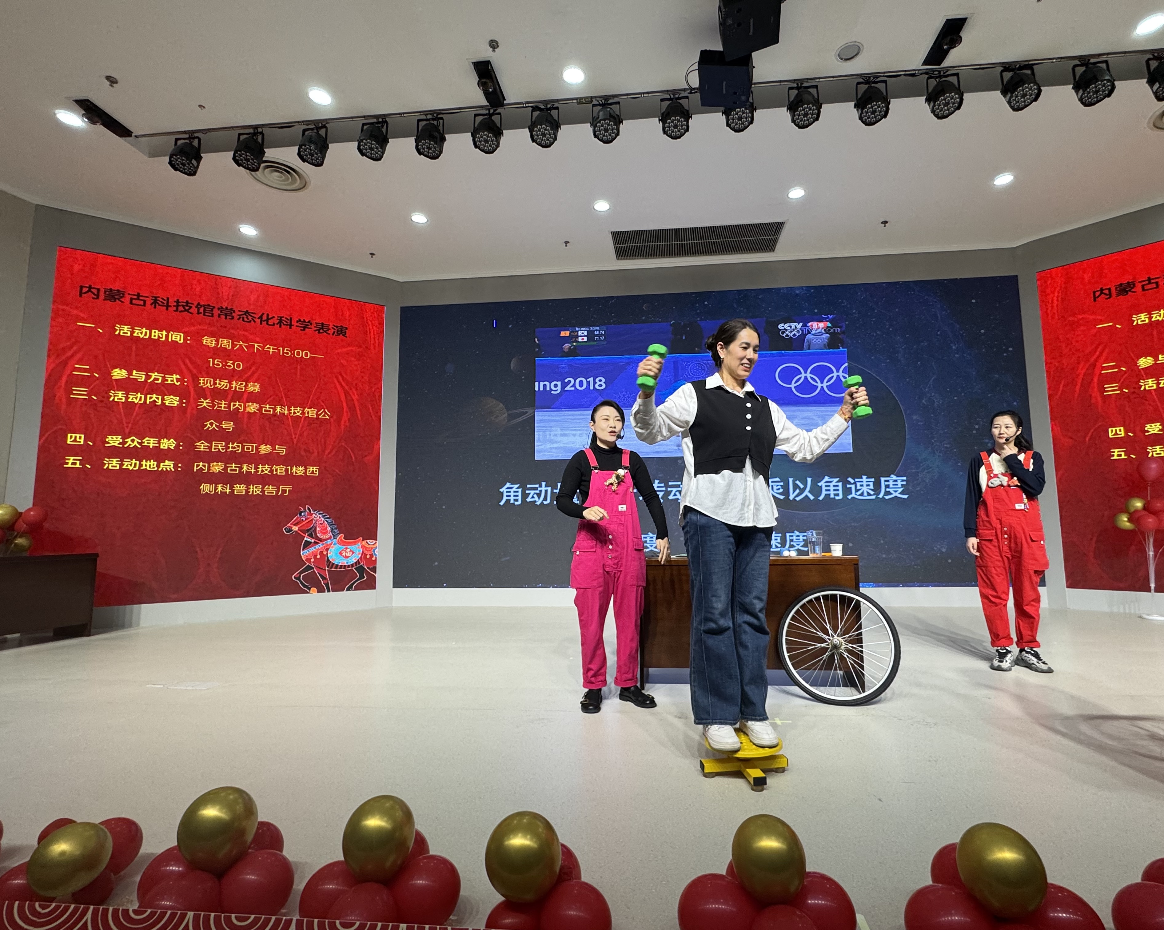 发布时间:2026-03-11 10:01 文章来源:内蒙古科技馆展览教育部在春意渐浓的三月,我们迎来了“三八”国际劳动妇女节。为致敬新时代女性力量,展现智慧之美与理性之光,3月8日,内蒙古科技馆精心策划上演了一场融合物理之趣与节日温情的科学表演。内蒙古科技馆原创科学实验秀《旋转世界》精彩上演,将物理学中深奥的“角动量守恒定律”,化作一幕幕生动直观、妙趣横生的视觉奇观,为节日增添了浓厚的科技色彩。