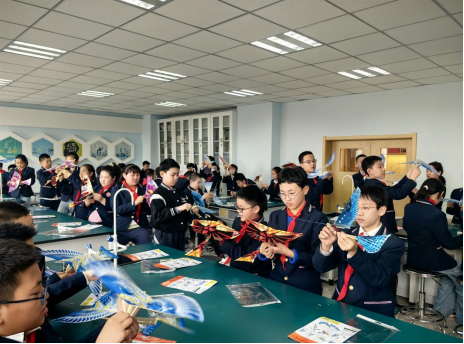 最受欢迎的动手实践环节,科技辅导员一步步细致讲解模型组装步骤,耐心示范机翼安装、传动结构拼接、重心调试等关键操作,指导大家完成扑翼机模型制作。同学们个个神情专注、兴致盎然,小心翼翼地拼接零件、调整细节,遇到难题时,或积极举手请教,或与身边小伙伴相互讨论、协作完成,教室里处处洋溢着探索科学的浓厚氛围。经过一番精心制作,一架架小巧精致的扑翼机模型在同学们手中诞生,每一件作品都承载着他们的科学梦想。