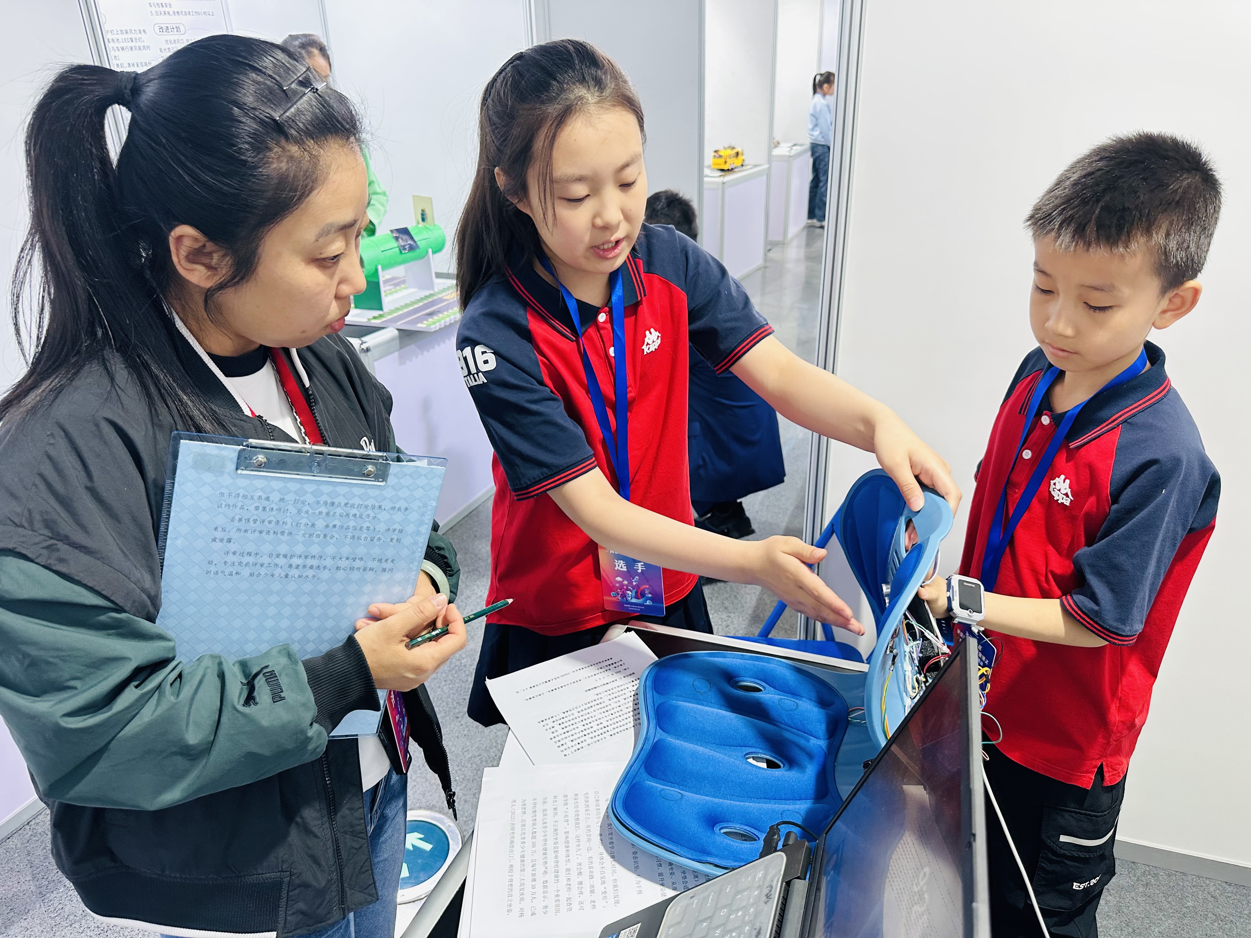 活动邀请19位全国各领域专家组成评审团开展专业评审,经材料审核、专家初评,最终遴选出发明作品、人工智能(编程)作品合计172个优秀项目晋级终评并参与现场封闭式答辩;40幅科技绘画作品入围终评现场展示环节。其中,发明与人工智能(编程)类作品角逐金、银、铜奖项,科技创意类作品围绕“太空旅行”“未来能源”两大主题评选优秀奖。